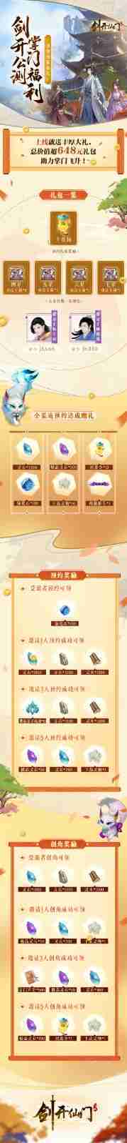 游戲為大家準備了海量的福利,,,,包括上線即可獲得的全渠道預約禮包、、、、十連抽等福利,,,輸入密令“JK666”、、、、“JK888”即可領取紫色弟子,,,達到金丹期后還有功法寶箱可領,,,助力全宗上下實力提升……所有獎勵總價值超過648元,,,,而邀請好友一起體驗,,,,更可以獲得額外的獎勵哦~